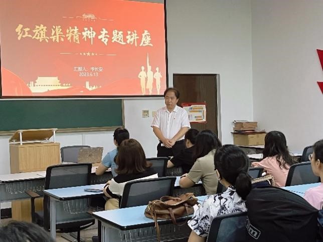 随后,李长安解读了红旗渠精神内涵,即“为了人民,依靠人民,敢想敢干,实事求是;自力更生,艰苦奋斗,团结协作,无私奉献”。修建红旗渠的条件十分艰苦,广大党员干部为了人民的利益和党的事业,顽强拼搏,勇于实践,真正把党和人民交办的事情办好。我们当代党员教师弘扬红旗渠精神,就是要坚持两个务必,端正党风政风。在成绩面前保持谨慎,不骄不躁的作风,继续保持艰苦奋斗的作风,吃苦在前,享受在后。最后,李长安通过介绍建渠过程中涌现出来的英雄人物,勉励支部党员要认识到调查研究的重要性,要深入基层才能查摆问题,才能使手上的“决策权”科学、公正。