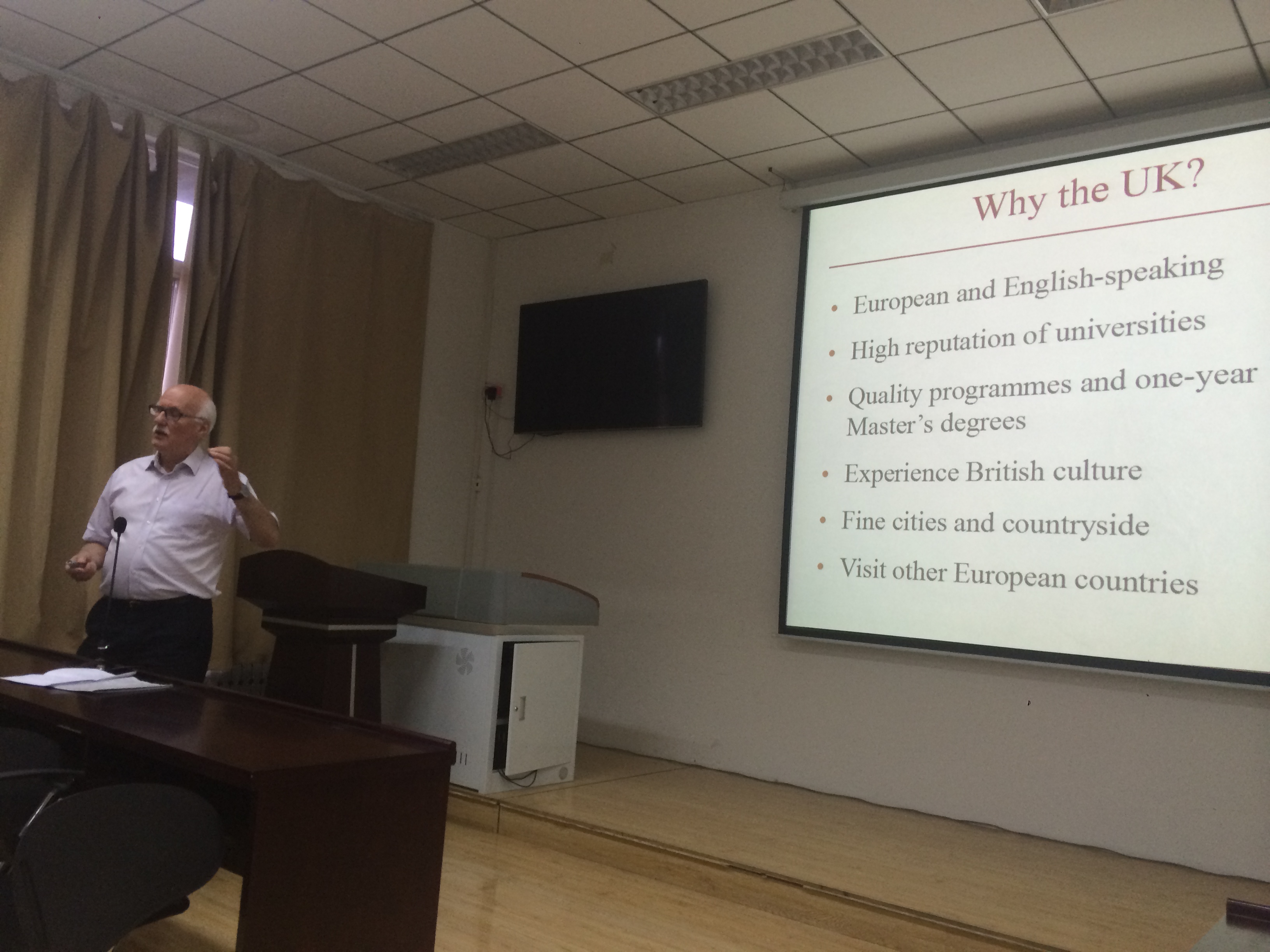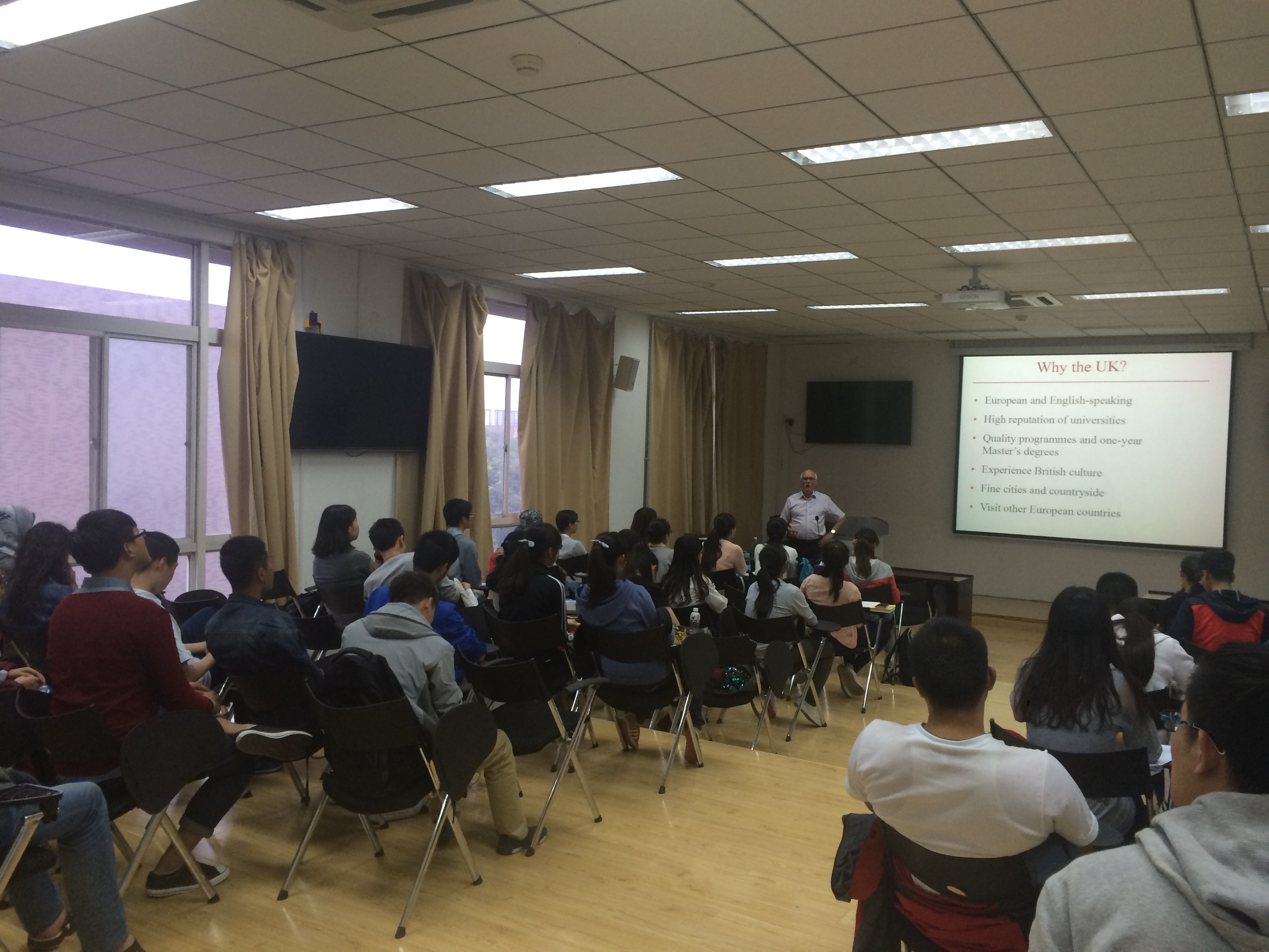 (通讯员 任利华)5月26日晚,英国莱斯特大学前国际处处长、教育咨询专家及跨文化问题专家Tony Pearson在南校区信远楼Ⅱ区402报告厅为威廉希尔足球本科生做了精彩报告,报告会由公司研究生英语教学部副主任任利华主持,威廉希尔足球英语、翻译专业的本科生及部分其他院系的员工聆听了此次报告。