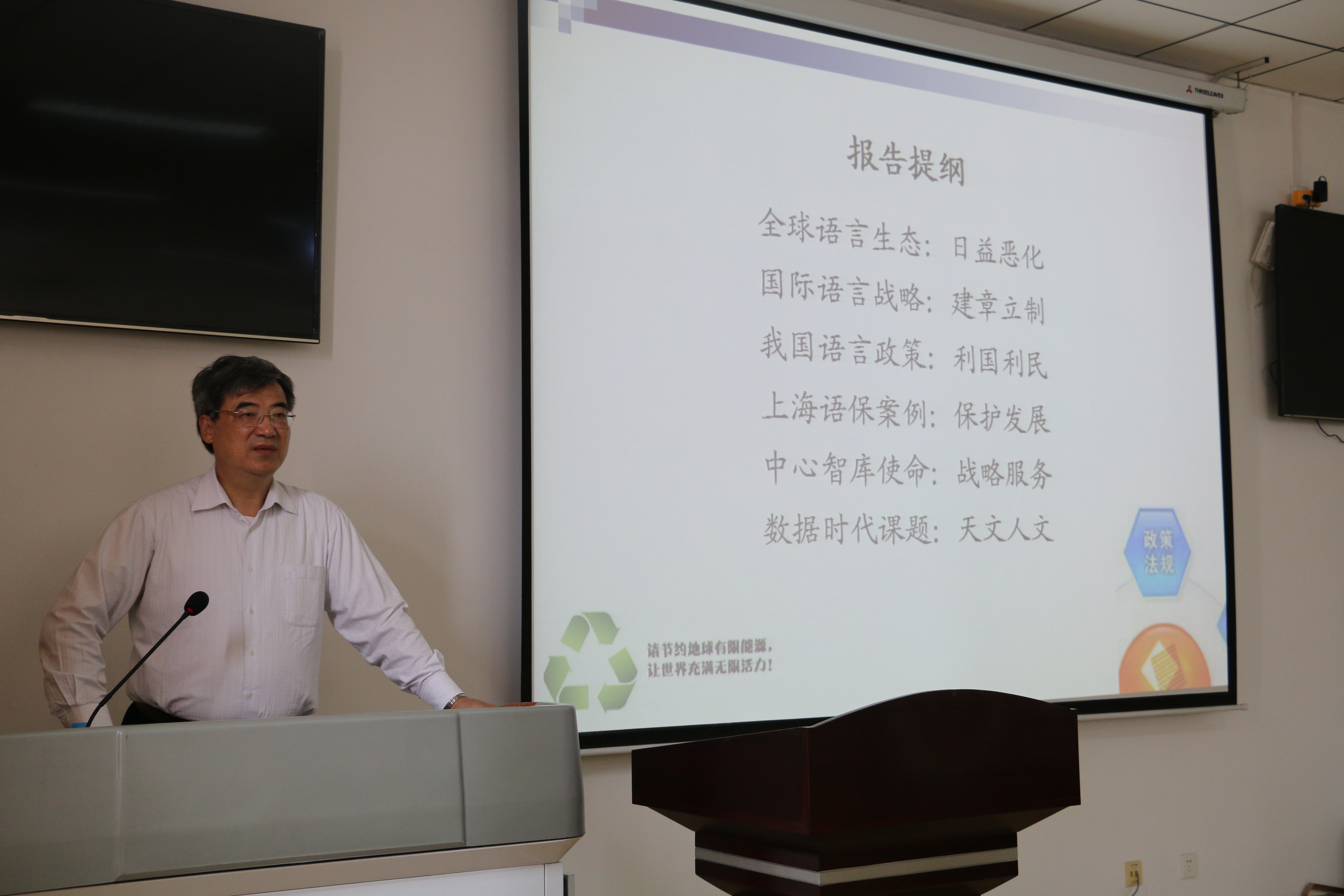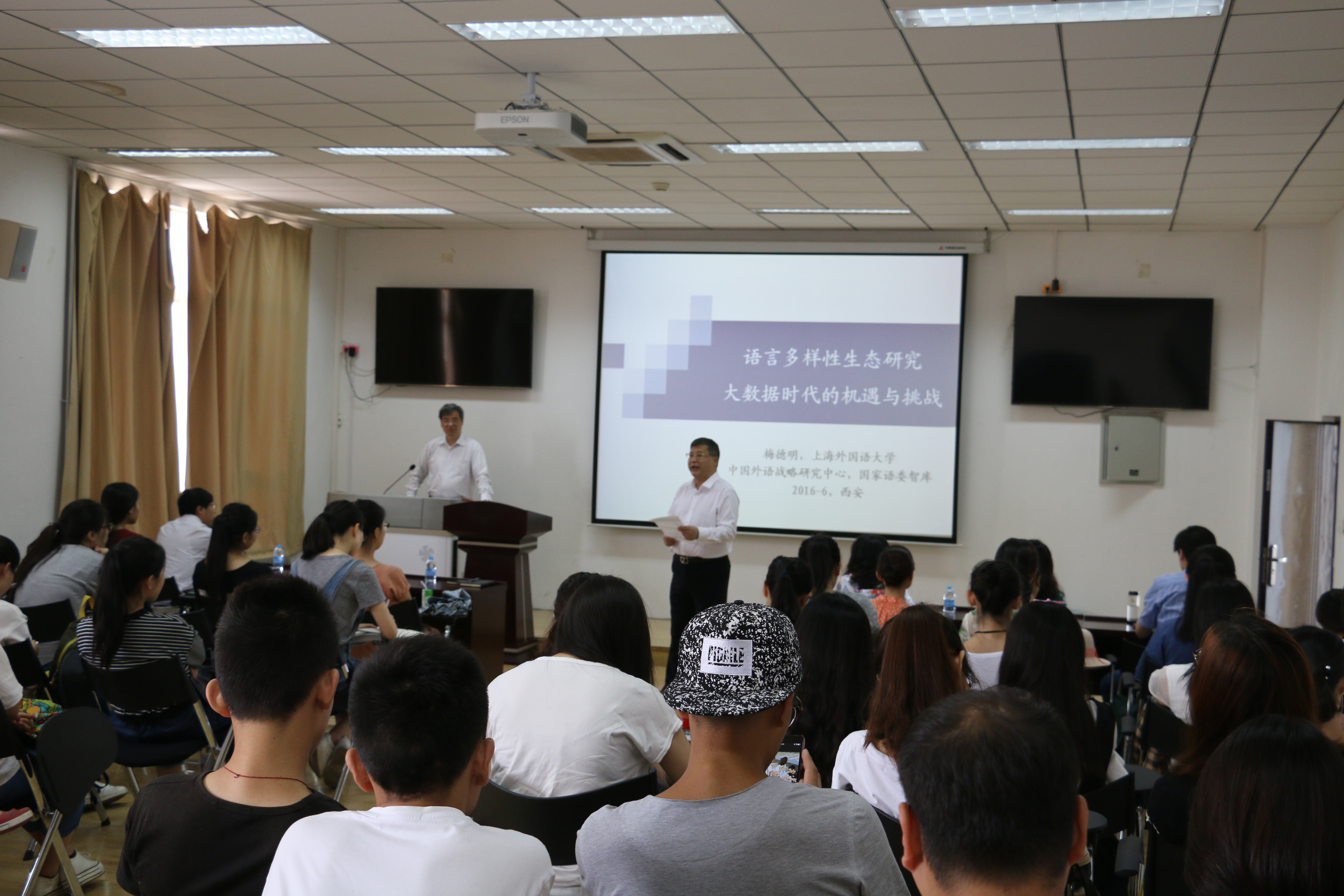 报告的主题是大数据时代语言多样性生态研究,梅德明教授从战略高度解读了语言生态、语言与文化、语言规划、大数据时代的语言保护等。他指出,“国际范围内有几千种不同的语言,但面临的发展前景却千差万别。”一些语言有很多人、很多地区在使用,十分流行;而另一些却即将消失。语言是文化的载体,一种语言消失意味着一种文化消失,这将严重破坏语言生态。为此,有必要保护弱小语言,以促进语言生态和谐。为一定程度上解决语言多样性的发展问题,多语人才战略现在获得了广泛支持,国家对于境内少数民族的语言保护工作也在继续展开。此外,梅德明教授还谈到了大数据时代的数据发展规律,以及如何利用大数据来促进语言学习,开展语言研究。