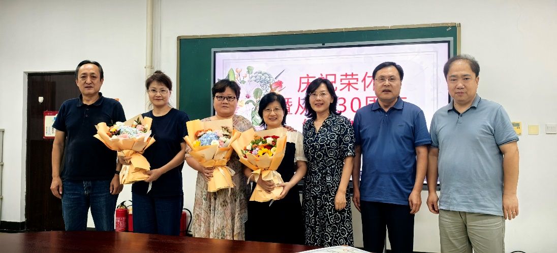 随后,党委书记徐战利、经理马刚向荣休以及从教三十周年的教师颁发荣誉证书并合影留念。学院领导向受表彰的教师表达感谢,是她们用自己的青春年华为员工和学院的发展做出平反而伟大的贡献,同时也表达了对教师们未来美好生活的祝福与期许。无论是荣休还是从教三十年都是人生的重要阶段,“为党育人、为国育才”的宗旨将继续引领她们不断前行。